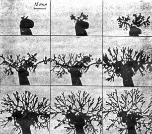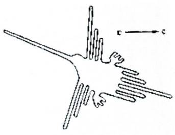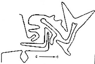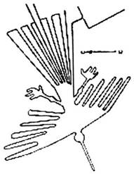 ЧАСТЬ 3Существует ещё одна и весьма интригующая особенность насканских рисунков: они не производят впечатления эмоционально окрашенных персонажей животного и растительного мира, а воспринимаются как бесстрастно начертанные абрисы, что ещё раз позволяет сомневаться в идее рукотворности данных изображений. И в самом деле, в окрестностях пампы, где довольно длительное время процветали такие древние цивилизации, как ика и наска, роспись на керамике данных народов наглядно демонстрирует нам отличное знание звериного естества, переданное с большим мастерством и чувством, далёким от абстрактно- холодного выражения на каменистом плато. Кто и зачем на долгие века впечатал эти знаки в безжизненное тело пустыни остаётся до сих пор великой тайной, как и многое другое, что происходило на нашей планете в течение прошлых времён. Остаётся только добавить: исполнители насканских шедевров явно преследовали какие-то серьёзные цели живописуя волшебным лучом необъятное число геометрических построений и подобия земной фауны и флоры. Но, быть может, не всё так безнадёжно закодировано и наш век глобальной техногенной цивилизации сможет дать нам необходимую подсказку. Например, пытаясь создать чувствительные сенсорные приборы, учёные придают им форму насекомых: крылышки, как у бабочек, приобрели стабильные датчики давления. Таких «бабочек» уже применяют для разметки приборов на самолётах в метеорологии. Или такое явление: форма многих цветков чем-то напоминает тарелки приёмных антенн, такая конструкция помогает растению повысить температуру внутри себя на несколько градусов т. к. собирает и концентрирует таким образом световую энергию. В наш век природные свойства животного и растительного мира широко используются на благо технического прогресса. Биомагнетизм у животных подсказал учёным получать попеременное использование различных средств навигации. Ещё великий Леонардо да Винчи, просвещая человечество во многих областях науки, утверждал, что птица — есть аппарат, работающий на основе математических законов, и делал далеко идущие выводы: «…Поэтому человеку возможно сделать такой же аппарат, со всеми его движениями». Как мы теперь видим, современное человечество научилось использовать подсказки природы и свои замыслы воплощать в сложнейших инженерных устройствах и различном многопрофильном оборудовании. Более того, современная астрономия, открыто заявившая о присутствии фрактальных фигур уже в момент взрыва звезды, рассматривает это воистину фантастическое явление, как некий информационный посыл, и, если хотите, проявление Высшего Разума, где фрактали проявляют себя и как простейшие геометрические композиции, будь то на просторах Вселенной или в материальном мире, и как сложнейшие композиционные элементы в животном и растительном мире. Отсюда можно сделать вывод, что природная структура растительного и животного мира есть суть проявления этого самого божественного фракталя, метаморфозы которого нескончаемое число раз повторяются на разных этапах развития. Например, структура бактериальных колоний имеет ветвящийся, т. е. фрактальный характер, и также устроена кровеносная система и дыхательные пути, кроны деревьев, корневые образования. Их главная задача — доставить (или вывести) какое- либо вещество в определённу