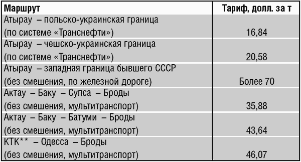 В последние годы Казахстан экспортирует через Украину 8 млн. тонн нефти в год трубопроводным транспортом и еще 2 млн. по железной дороге. Это небольшие объемы, притом что страна продает более 50 млн. тонн в год. Но основную долю Казахстана в украинском транзите составляют поставки в Одессу и Гданьск (по трубе «Дружба»), что указывает на объективную заинтересованность казахстанских поставщиков в этих отправных пунктах. Перспективность нового маршрута для экспортеров легкой каспийской нефти основана на том, что он позволяет избежать ее смешения в трубопроводах российской компании «Транснефть» с сырьем марки Urals. Это смешение лишает экспортеров не менее 3 долларов на каждый баррель. То есть если легкая нефть пойдет по маршруту Одесса – Гданьск на рынки без смешения, то продавцы каспийского сырья получат рыночную премию в размере 20– 25 долларов на тонну.