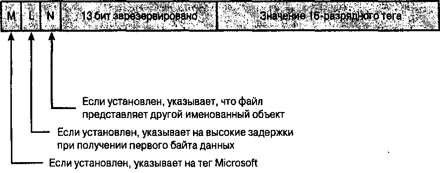 Рис. 10.1. Структура тега точки повторной обработки Каждая точка повторной обработки состоит из тега и объекта данных. Тег – это уникальное 32-разрядное число, назначаемое непосредственно Microsoft. Независимые производители могут запросить назначение специального тега. На рис. 10.1 показана структура тега повторной обработки, включая следующие элементы: бит (М), который указывает, что тег принадлежит драйверу устройства от Microsoft; бит (L), который указывает на значительные задержки при получении драйвером первого байта данных; в качестве примера моэкно указать службу HSM, при использовании которой получение данных с неинтерактивного носителя может осуществляться достаточно долго; бит (N), который указывает, что файл или каталог представляют собой ссылку/перенаправление на другой файл или каталог; зарезервированные биты; фактическое 16-разрядное значение тега. Объект данных точки повторной обработки может иметь размер до 16 Кбайт. Файловая система NTFS обеспечивает предоставление этого объекта данных драйверу устройства, созданному производителем. Объект данных предоставляется в процессе использования тбчки повторной обработки в подсистеме ввода-вывода. На рис. 10.2 рассматривается последовательность рабочих операций и реализация точек повторной обработки. Предполагается, что пользователь обладает необходимыми привилегиями для выполнения запрошенной операции. Кроме того, на рис. 10.2 показан только драйвер фильтрации файловой системы, что позволяет сконцентрироваться исключительно на точках повторной обработки.