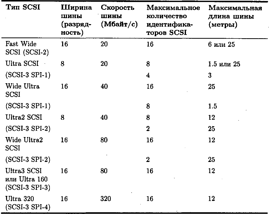 Глава 2. Серверные хранилища данныхИзначально системы хранения данных разрабатывались для мэйнфреймов и большинство из них были основаны на закрытых, частных технологиях. Для мини-компьютеров были созданы такие стандарты, как SCSI. С появлением персональных компьютеров серверные стандарты (SCSI и IDE) получили широкое распространенйе. В этой главе рассматриваются системы хранения данных, подключенные к серверу (Direct Attached Storage – DAS), т.е. устройства, подключенные непосредственно к компьютеру под управлением Windows NT. В главе 1 описан стек ввода-вывода Windows NT в контексте подсистемы хранений данных. В этой главе внимание уделяется разработке стека ввода-вывода подсистемы хранения данных Windows NT для улучшения поддержки новых устройств Fibre Channel и SCSI. Подобные устройства воспринимаются Windows NT как подключенные непосредственно к компьютеру. 2.1 Интерфейс SCSIАббревиатура SCSI расшифровывается как Small Computer System Interface (интерфейс для малых компьютеров), что на данный момент кажется нелогичным, поскольку устройства SCSI обычно подключены к высокопроизводительным серверам и являются наилучшим выбором для использования в качестве подсистемы хранения для многопроцессорных центров хранения данных. Стандарты SCSI утверждаются техническим комитетом Т10 (http://www.tlO. org), подразделением Международного комитета INCITS (InterNational Committee for Information Technology Standards), который, в свою очередь, работает под эгидой Национального института стандартизации США (American National Standards Institute – ANSI; http://www. ansi.org). 2.1.1 Стандарты Шина SCSI изначально разрабатывалась в качестве параллельной архитектуры отправки данных по 8- или 16-разрядной шине. Существовали и последовательные версии архитектуры SCSI, например SSA (Serial Storage Architecture) и 1394. До определенного времени эти архитектуры (особенно SSA) разрабатывались отдельно и лишь позднее были включены в проект стандарта SCSI-3. Оба стандарта – как SSA, так и 1394 – практически не используются на рынке корпоративных подсистем хранения данных, однако достаточно широко распространены на рынке потребительских устройств. За годы своего существования стандарты SCSI были значительно усовершенствованы, появилось множество версий, которые различаются следующими параметрами: ширина шины данных; быстродействие шины данных; количество устройств, которые могут быть подключены к одной шине; электрические и механические характеристики шины; максимальная длина шины; тип архитектуры шины – последовательная или параллельная. Хотя SCSI исторически ассоциируется с параллельными шинами, компьютерная индустрия активно движется в сторону последовательной архитектуры, и стандарты SCSI не являются исключением. Обратите внимание: SCSI представляет собой не единый стандарт, а определенный набор стандартов. В одних стандартах заложены механические и электрические характеристики, в других – наборы команд, которые должны быть реализованы устройствами. Эти стандарты реализуются и в других устройствах, например Fibre Channel. В табл. 2.1 приведены различные стандарты SCSI и их характеристики. Таблица 2.1. Стандарты и характеристики SCSI
