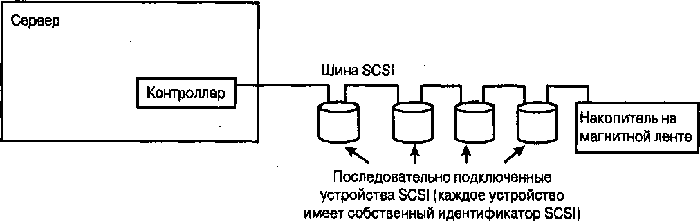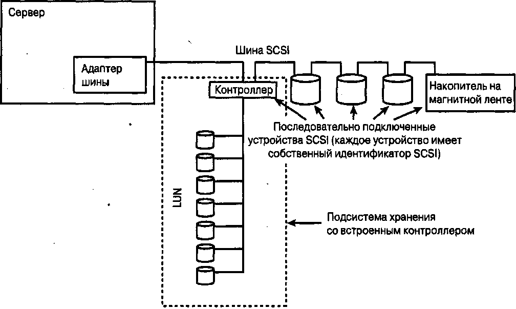 Рис. 2.1. Хранилище SCSI, подключенное к серверу